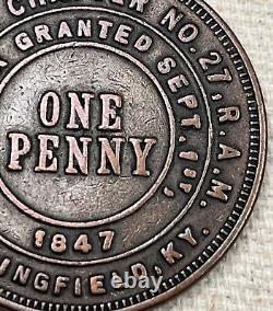 1847 Royal Arch Masons Chapter Penny Springfield KY Washington County Coin Medal