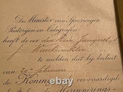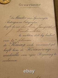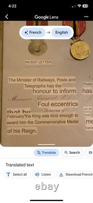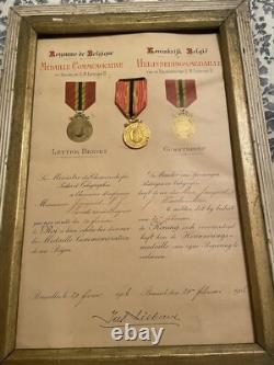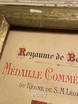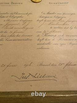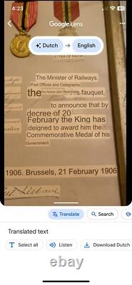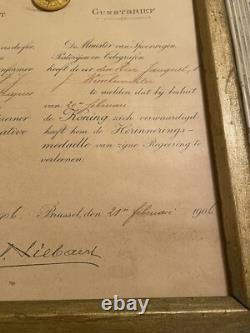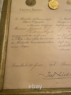 No obvious tears or similar type damage. The writing on the certificate of award is very good and clear. (I have attached two screenshots of translations from Google to help you better know what this means). My best research is the Name of Jauquet or perhaps Jaquet spelled differently. There was a famous Belgium sculptor named Joseph Jaquet that would have been somebody that could have been presented this award for his service.