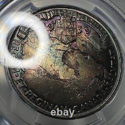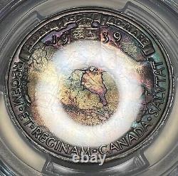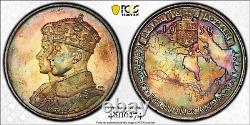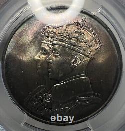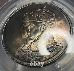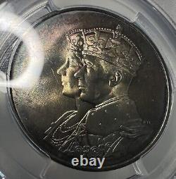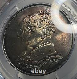 This is a 1939 (London Mint) Canadian Royal Visit Silver Medal PCGS MS66 (Mint State 66). This coin has some really pleasing toning on each side with the reverse being full of deep purples and greenish blues that pops nicely when it reflects in the light. The obverse is still nice, but it's more subdued and dull compared to the reverse.