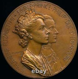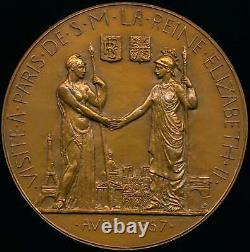 1957 Royal visit to Paris 72mm bronze medal by Henri Dropsy E2098a