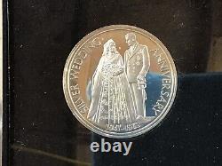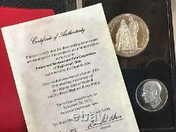 Type/Denomination/Composition: 1972 Franklin Mint Royal Silver Wedding Anniversary Silver Art Medal Set. Measurement: Approximately 1 1/4" and 1 3/4" diameter. May have some natural toning, supplied in custom display box with COA. You will receive a lot like shown in the photographs. Note: We make every effort to verify the catalog numbers supplied to us by our sources.