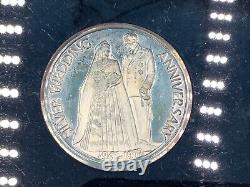 1972 FRANKLIN MINT 1972 ROYAL SILVER WEDDING ANNIVERSARY ART MEDAL SET STERLING. 1972 Royal Wedding Anniversary Commemorative Medal 3 Coin SetItem(s) Description:Obverse Design:Portrait Reverse Design:Various Denomination:None Mintage various Shape: Composition. 925 Silver Additional Information:Limited edition 3 coin set consisting of one large (45mm) and two smaller (32mm) sterling silver medals. Included in the lot are the coins, original packaging from the Franklin Mint and the COA.