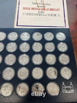 Add these coins to your collection today! 39pc 1973 Freedom Medal Royal Mint Sterling Silver Proof Coin Set. Struck by the Royal Mint of Great Britain For American Express in 1973. Comes with the original Freedom Medals book, describing a history of each medal in full detail. All the coins are encapsulated in hard round plastic holders and displayed in a padded folder.