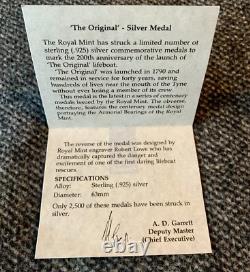 1990 Royal Mint'Original Lifeboat' Bicentenary Boxed Silver Medal