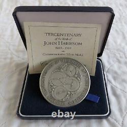 1993 ROYAL MINT TERCENTENARY OF THE BIRTH OF JOHN HARRISON 1693 - 1993 LARGE 63mm COMMEMORATIVE HALLMARKED TONED STERLING SILVER MEDAL. LOW MINTAGE OF JUST 2,500. OBVERSE FEATURES CENTENARY OF THE ROYAL MINT ARMORIAL BEARINGS DESIGN. COMES WITH CERTIFICATE OF AUTHENTICITY IN ORIGINAL PRESENTATION BOX. METAL - TONED SILVER (HALLMARKED).