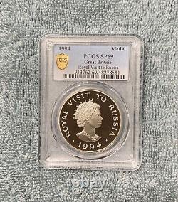 Up for offers is a 1994 Great Britain Royal Visit to Russia Medal. It is Silver and is graded Specimen 69.