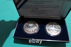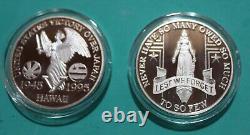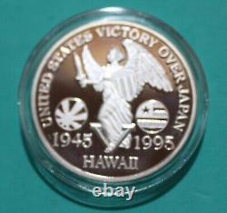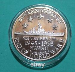 A flawless quality gem proof set, this two coin set is a fitting tribute to the Pacific War. It represents the Alpha and Omega of the Pacific War (USS Arizona and USS Missouri, respectively) and the end of WW2. This is a very limited edition, since the memorial/victory over Japan coin was limited to 1200 maximum, including sets.