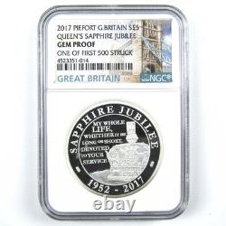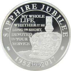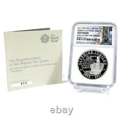 2017 Queen's Jubilee Gem Proof NGC 56.56 g. A genuine 2017 Queen's Sapphire Jubilee Silver, from The Royal Mint, graded and certified Gem Proof by NGC.