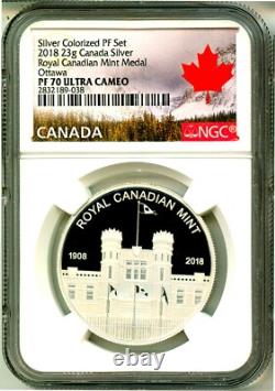 This is a beautiful 2018 Canada Royal Canadian Mint 110th. Anniversary Medallion 23g From The Silver Colorized Proof. Set S ilver Commemorative Medal. The medal has been graded PF70 Ultra Cameo by NGC, a. HAPPY 110-YEAR ANNIVERSARY TO THE ROYAL CANADIAN.