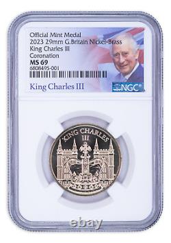 2023 Great Britain King Charles III Coronation Rare Exclusive Official Medal. Only Available at the Royal Mint Experience Physical Store in Wales during the Coronation of King Charles III! This 2023 Commemorative Medal celebrates the Coronation of His Majesty King Charles III on May 6, 2023. Professionally encapsulated and graded in a nearly flawless grade of MS69 by NGC (top pop). Please reach out if you have any questions!