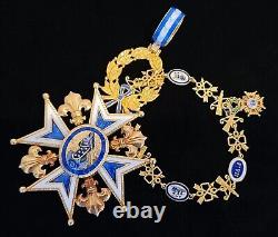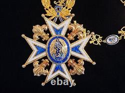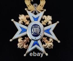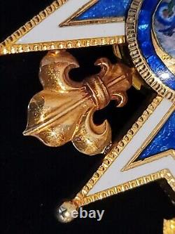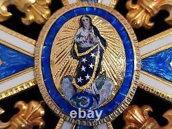 Due to the long lifespan of this Order, there are great deal of variation in the sizes, composition materials, and design attributes of the Order's grades. These features highly affect the price of the item. The Order is also known as the Order of Charles III; and the Order of the Immaculate Conception. The Royal and Distinguished Order of Charles III (Real y Muy Distinguida Orden de Carlos III) was established by King Carlos III/Charles III of Spain on September 19, 1771, to mark the occasion of the birth of his grandson Carlos V/Charles V, future heir of the Spanish thrown. It was dedicated to Immaculate Conception, and was confirmed by Pope Clement XIV on February 21, 1772.