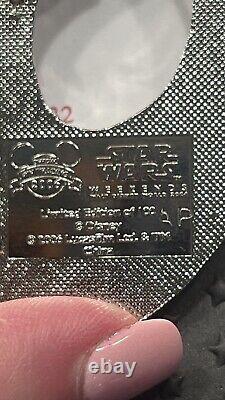 Celebrate the power of the Force at Star WarsTM Weekends 2006, which will take place at the Disney-MGM Studios from May 19 through June 11, 2006. This Limited Edition medallion pin is part of Star Wars TM Weekends 2006 Frame Set. Features a logo with half the rebellion logo, half the imperial logo. The medallion pin measures approximately 2.5" wide by 2.5" tall.