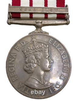 The British Royal Navy RN General Service Medal & Near East Bar L Stwd Hayden is a distinguished military decoration awarded to personnel of the Royal Navy for their service. This particular medal features the General Service Medal, which is a testament to participation in various operations and campaigns. Accompanied by the "Near East" bar, it signifies involvement in specific military actions in the Near East region. The naming "L Stwd Hayden" likely refers to Leading Steward Hayden, highlighting the individual sailor's contribution and dedication.