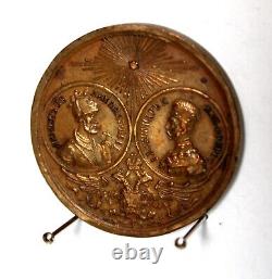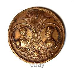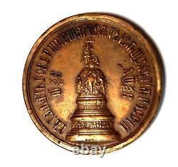 This is a very rare antique table medal/jetton/token issued by Imperial Russia in 1862. It was issued to commemorate the 1000 years (The Millennium of Russia) of Russian establishment. It is made out of solid bronze. Diameter 28.4mm, thickness 2.7mm; weight 12.3G. This commemorative medal was dedicated to the opening of the monument in Veliky Novgorod "The Millennium of Russia" in 1862.
