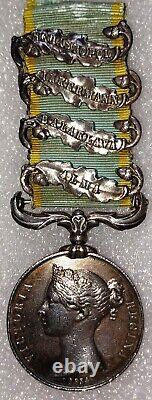 Crimea Medal 1854-56, (4) clasps, to Driver Absalom Berry, Royal Artillery. Top two clasps are fixed together with a solder repair, heavy edge bruising and contact marks obscuring regimental number, good fine or better. All clasps are confirmed, Absalom Berry was born circa 1833, he served in 1st Company, 3rd Battalion of the Royal Artillery. An Absalom Berry enlisted in The Royal Marines 15 Dec 1856 and died in service January 1873 in a trench excavation accident Jan 1873 at Portsea Island, Hampshire, believed to be the same man.