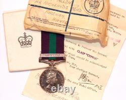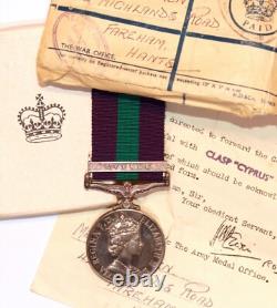 Warrant Officer Class 2 William John Allen, Royal Artillery. General Service 1918-62, 1 clasp, Cyprus 838052 W. In named card box of issue, with OHMS envelope and transmittal slip. Please see images as illustration of condition. Fixed price items are not open to offers unless otherwise stated in the listing.