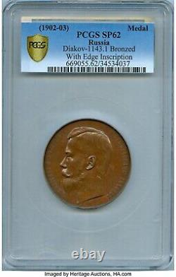 This is a rare specimen that is of interest to collectors and history connoisseurs. The medal "For diligence and art" from the Ministry of Finance is not only an object of historical value, but also a work of art that majestically reflects the spirit and elegance of the era of the Russian Empire. PCGS population - 3 in all grades, only 1 in SP62.
