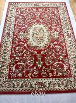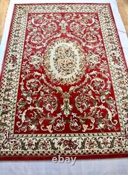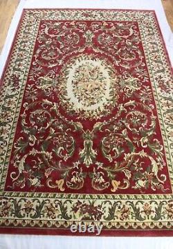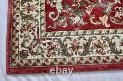 Karastan ROYAL COURT COLLECTION medallion area rug. Size 5'2" x 7'10". Multicolor pattern, base color claret with greens and tans. Permanently Moth and Insect Resistant.