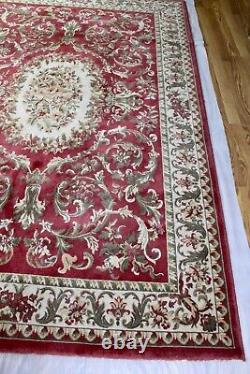 In very good used condition. Pile is very good condition with not much wear for a used carpet. The last photo shows a very slight stain mark at about 12 o'clock on the photo. Second to last photo shows the condition of an edge of the carpet, that shows very lite wear. Some of the edges show no wear at all.