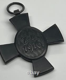 The Cross was instituted by King Ludwig III on 7 January 1916 to be'a commemorative sign and recognition of thanks for those persons who during this war have performed with particular merit for the army or for the general welfare of the homeland through official and voluntary activities' (als Zeichen ehrender und dankbarer Anerkennung für solche Personen, die sich während dieses Krieges durch dienstliche oder freiwillige Tätigheit in der Heimat besondere Verdienst um das Heer oder um die allgemeine Wohlfahrt des Landes erworben haben). The Cross was cast in the Royal Bavarian Mint in Munich and was originally of blackened iron but in the later stages of the war, as a result of shortages of strategic materials, zinc was substituted.This example is of blackened bronze and is exceptionally fine. As Photographed with wear as seen. A Nice Candidate for any Period Collection, Impression, or Display. Recent Estate Collection Acquisition & Presented as Acquired. Check back often - we search estates and sources across the world to bring a fine selection of militaria.