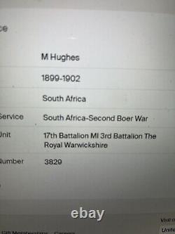 Queen's South Africa Medal To 3829 Pte M Hughes Royal Warwickshire MI