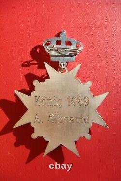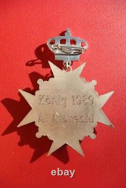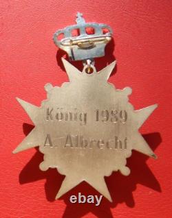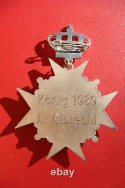 RARE GERMAN Royal Order KING OF THE SHOOTING ARMS AWARD MEDAL BADGE 1989. SIZE: 5.8 X 8.2 CM.