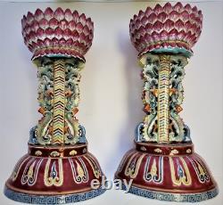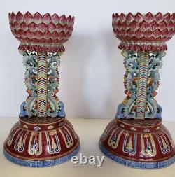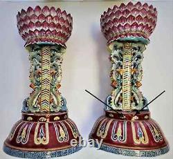 Finely modeled and finely enameled in brilliant tones and gilt. Height of taller: 12 1/4 inches, 31.2 cm. Highly collectible and desirable fine Chinese ceramics given its rarity.