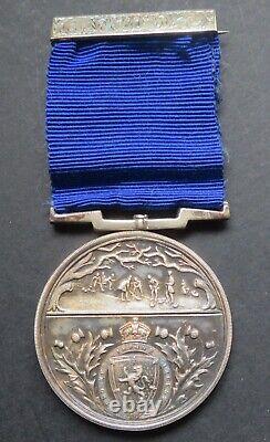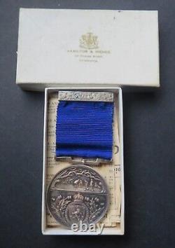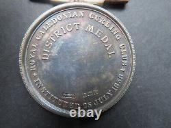 Royal Caledonian Curling Club District Medal. Makers mark for Hamilton & Inches. Comes in its original hamilton and inches box and a newspaper clipping of the award.