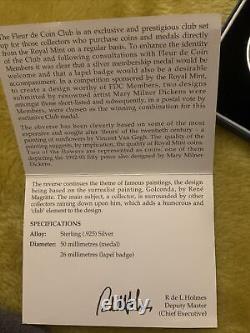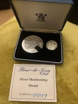 ROYAL MINT FLEUR DE COIN 50mm SILVER MEMBERSHIP MEDAL AND BADGE SET boxed/coa