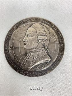 James Cook Silver Medal - 1969 Royal Numismatic Society of New Zealand - 121g - Original Case. Celebrate the legacy of Captain James Cook, famed circumnavigator and Pacific explorer, with this 1969 commemorative silver medal issued by the Royal Numismatic Society of New Zealand. Struck in solid silver, weight approx. Issued in 1969, commemorating Cook's global explorations.
