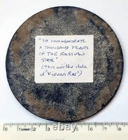 Very interesting and unusual piece, apparently a die trial of a famous medal issued on occasion of 1000 anniversary of Christianity in Russia. 86 mm, 69 gram, uniface, virtually UNC, pretty soft metal.