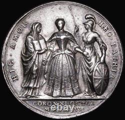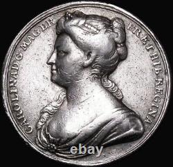 Coronation of Caroline 1727 34mm diameter in silver by J. Croker, the official Coronation issue, Obverse: Bust Left CAROLINA. Reverse: The Queen standing, flanked by Religion and Britannia.