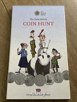 THE ROYAL MINT ORIGINAL COIN HUNT 50p ALBUM WITH New Gardens And Medallion.