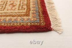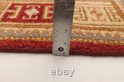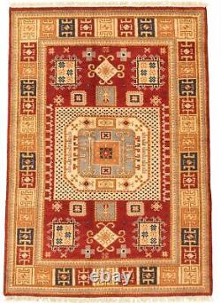 Traditional Hand-Knotted Geometric Carpet 4'7" x 6'7" Wool Area Rug. Fine hand-knotted Indian rugs with strong Persian influenced designs Bordered, Geometric, Traditional style rug with Burnt Orange, Cream, Dark Blue, Light Blue, Red accent colors Imported from India and crafted using the finest weaving techniques Hand-knotted and constructed from 100% Wool with 100% Cotton foundation 4-Feet 7-Inch by 6-Feet 7-Inch (140cm x 200cm).