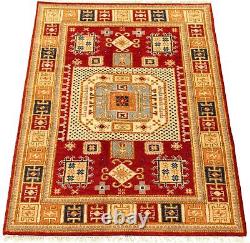 Traditional Hand-Knotted Geometric Carpet 4'7 x 6'7 Wool Area Rug