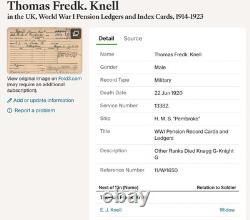 Long service medal issued to Chief Stoker Thomas F Knell. Entitled to SWB Silver War Badge 12848 and a British War Medal for WW1 service. His son, Harold received the MBE at Buckingham Palace in 1953, according to online sources and there is a picture of this on ancestry.