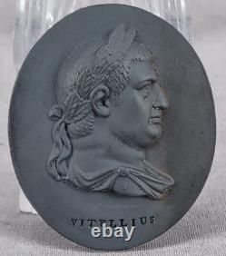 Wedgwood Roman Emperor Vitellius Black Basalt Portrait Medallion Plaque 1780-95. Rare antique British black basalt portrait medallion of the Roman Emperor Aulus Vitellius. Impressed Vitellius below the portrait. Also impressed Wedgwood on the reverse.