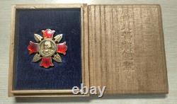 Combat-Issued Only - This isn't some "thank you for your service" medal. It was given only to those who shed blood in battle. Original Wooden Box Included - The front reads (Military Wound Badge), meaning this is the real deal, not a loose badge floating around. Official Mint Mark - Stamped by the Japan Mint, proving it's authentic wartime issue, not a later reproduction. This Type II badge is a warrior's medal through and through. The cross shape, with four enameled red shields, represents battlefield toughness, while the center medallion features Kusunoki Masashige, a legendary samurai who fought to the death in 1336. Why This Matters to Collectors. Issued Only to Wounded Soldiers - Unlike common medals, these weren't mass-distributed. Original Boxed Examples Are Scarce - Finding one in a matching wooden case is rare. Collectors Love These - Japanese awards, especially combat-earned medals, have a strong following in the WWII militaria market. With the original box and official mint mark, this is top-tier for collectors.If you're serious about collecting WW2 Japanese military awards, this is one to grab before it's gone. This is not just a badge-it's a soldier's sacrifice, a battlefield honor, and a rare find in WW2 militaria.