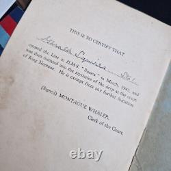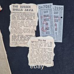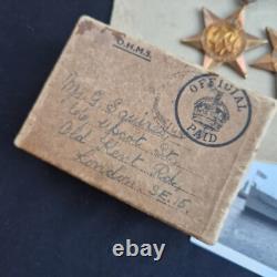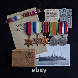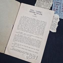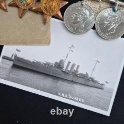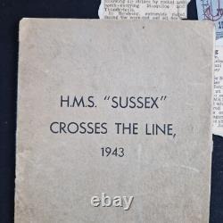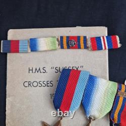 He served in the Royal Navy during the Second World War. Medals (5+1) - 1939-45 Star, Atlantic Star, Burma Star (+Pacific Clasp), Defence Medal, War Medal. Medal box addressed to Mr. A rare and interesting copy of H. "SUSSEX" CROSSES THE LINE, 1943. A 1944 printed edition of "The Royal Marines". X2 HMS Sussex related newspaper cutting. Copy photograph of HMS Sussex.Soldier's Release Book belonging to 6911814 A. Regular Army Certificate of Service - 6911814 Private Archer Edward Squires. (Archer Edward Squires must have been Gerald's brother). Atlantic theatre In September 1939 she operated with Force H in the South Atlantic and Indian Ocean during the search for the German raider Admiral Graf Spee. In August her crew detected a defect with her propulsion machinery, so she was sent to Glasgow for repairs to her turbine blades.