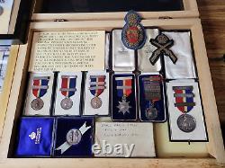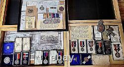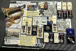 Complete with original boxes all labeled and makers marked. Hat badges and pins in preserved condition. All traceable medals with dates. Encampment picture with staff photograph.A timeless, valuable heirloom set. Many of the medals are silver. Museum quality items never to be found again!
