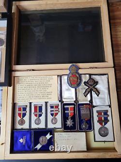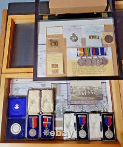 Complete set of medals, pictures, Kings prize badge with division register for sgt. Jack Burnett of the royal marines. His career before WW I thru WW II, many shooting medals and arms training awards.