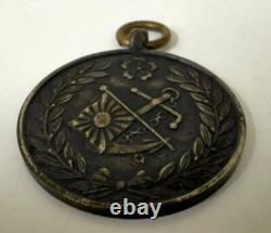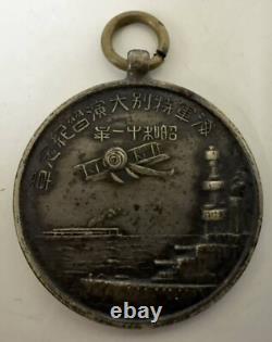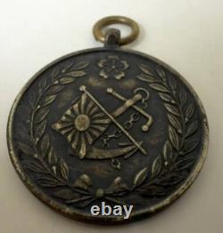 This particular exercise was a display of Japan's preparedness and maritime power, showcasing its naval innovations and strategic prowess. 1933 was a time of great significance for the Japanese Imperial Navy. Following the Manchurian Incident of 1931, Japan began pursuing an aggressive military stance, culminating in its full-scale invasion of China in 1937. During this period, Japan's naval forces focused on modernization, with the development of advanced warships and aircraft to strengthen its maritime dominance in the Pacific. The Special Naval Exercise of 1933 was not only a training event but also a symbol of Japan's commitment to enhancing its military might. The medal itself features a powerful design. Obverse: The anchor and rising sun flag, symbols of Japan's naval pride and heritage, are surrounded by laurel leaves and a cherry blossom emblem, alluding to the military's connection to the nation's cultural identity. Reverse: A detailed depiction of Japanese warships and aircraft in action, emphasizing the technological advancements and power of Japan's Imperial Navy at the time. Historical Significance: Issued in 1933, the medal commemorates Japan's growing naval power during a crucial period of military escalation in the lead-up to World War II. Design Elements: The anchor and rising sun flag represent Japan's maritime dominance, while the cherry blossoms symbolize the nation's enduring strength and cultural pride.Condition: The medal shows signs of age, with some wear, including a slight indentation at the 12 o'clock position, possibly from the ring that was originally used for hanging a ribbon. Despite this, it remains a highly collectible piece, especially for those interested in World War II or Japanese military history. This WWII Imperial Japanese Navy Medal is an important historical artifact, marking a key point in Japan's naval history, and serves as a testament to the country's military legacy in the early 20th century.